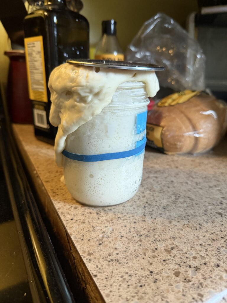 My daughter however, is not like me; she is made from equal parts flour, and water. I don’t want her getting so big to where she does not fit inside of her home, so I have to dump some of her out before I feed her again. All of my friends and family love her, as she makes delicious bread! But don’t be fooled, just because she eats a lot does not mean she is overweight- in fact, she is VERY active! She bubbles and bursts, and loves to party with her bacteria friends who are created in her home.