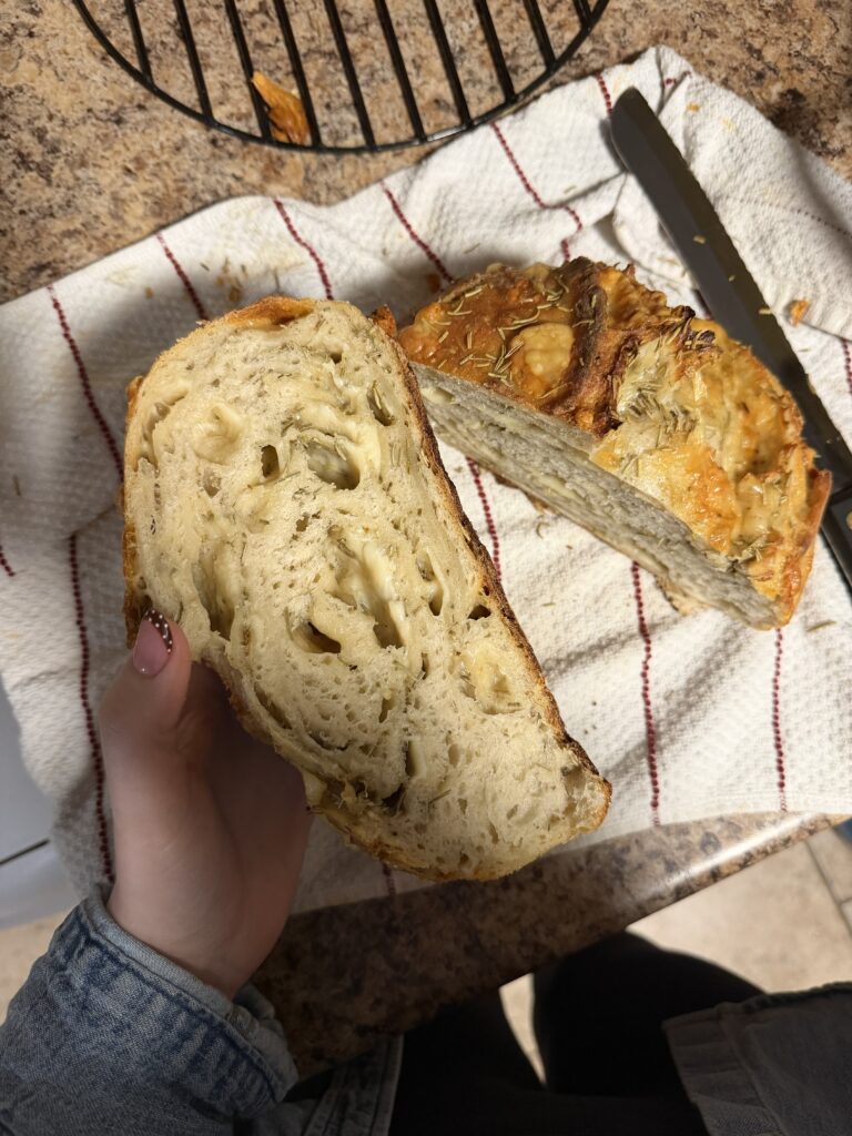 I have recently started an Instagram called “Kajsabakes”, where I post all of my sourdough ventures, while also selling my bakes. I have sold a jalapeno cheddar and a focaccia loaf to some regulars at Browns Socialhouse (my workplace). They said it was the best bread they have ever had, and plan on ordering more soon! I have also sold focaccia bread to 2 of my friends, who loved it just as much.